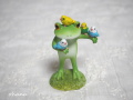 カエルが頭の上と肩に鳥を4羽乗せています♪