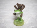 カエルがクマをおんぶして楽しそう♪