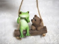 ブランコにカエルとクマが乗っています。